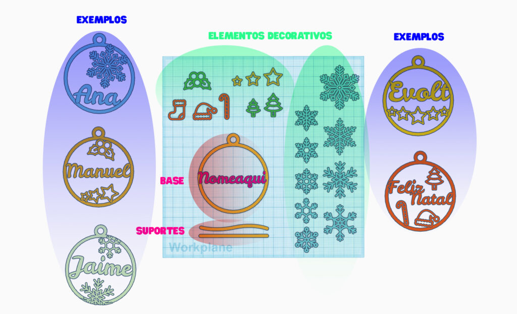 Estas podem ser utilizadas de várias formas, para imprimir em 3D ou para utilizar em máquinas de corte laser e fazer bolas de natal personalizadas em madeira ou MDF.