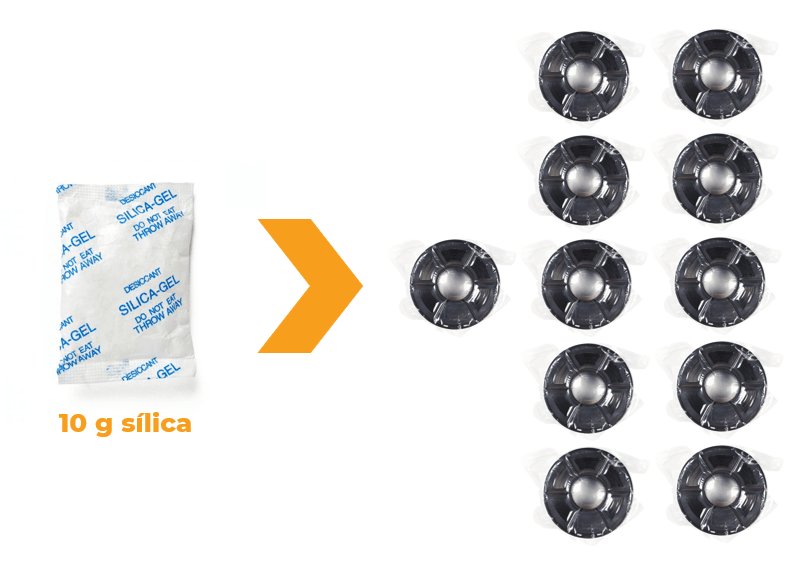 Existem fórmulas para nos ajudar a estabelecer a quantidade de sílica-gel em função da embalagem e de uma série de critérios um pouco complexos de estabelecer.