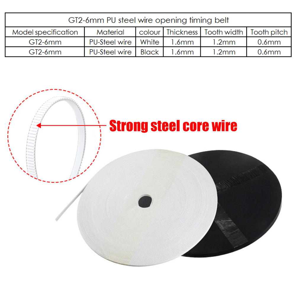 Correia Gt2 de borracha com reforço de aço , com 6mm de largura.