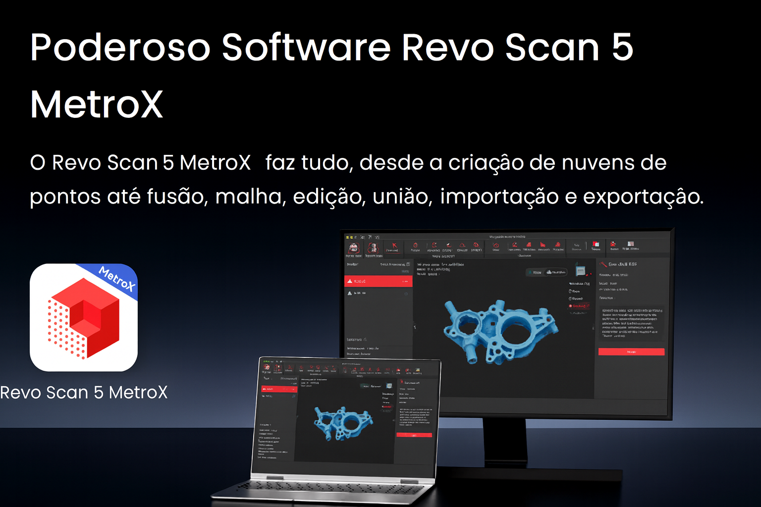 | Formatos de Ficheiro de Saída | PLY, OBJ, STL, ASC, 3MF, GLTF, FBX |