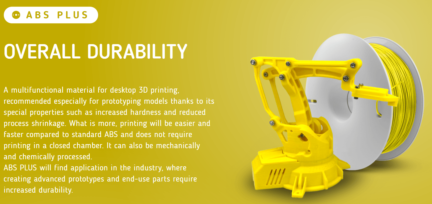 ABS PLUS é material multifuncional para impressão 3D, recomendado especialmente para modelos de prototipagem graças às suas propriedades especiais, como o aumento da dureza e a redução da retracção no processo de impressão.