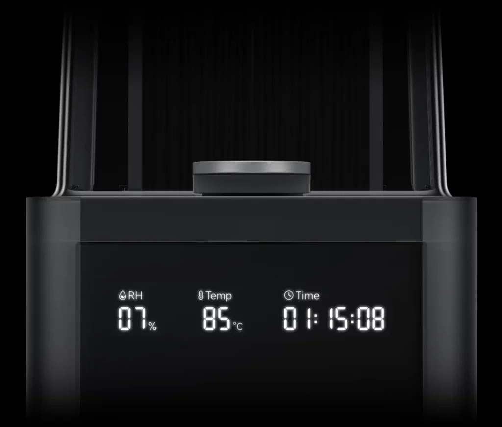 Durante o processo de secagem, as bobinas de filamento rodam automaticamente para garantir uma secagem mais uniforme.