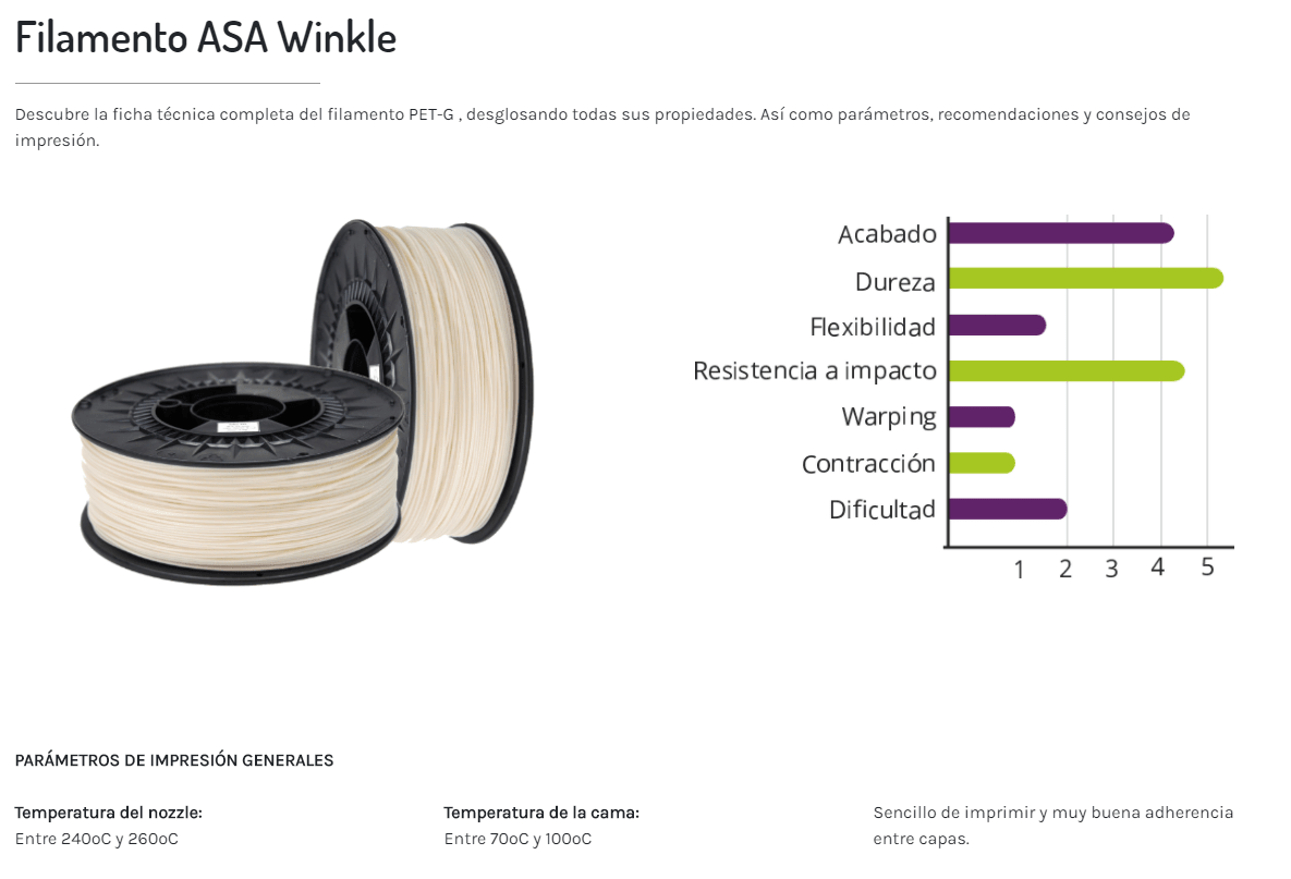 O nosso filamento ASA (1,75mm ou 2,85mm) é um filamento fabricado em Espanha para impressoras 3D com tecnologia FFF/FDM.