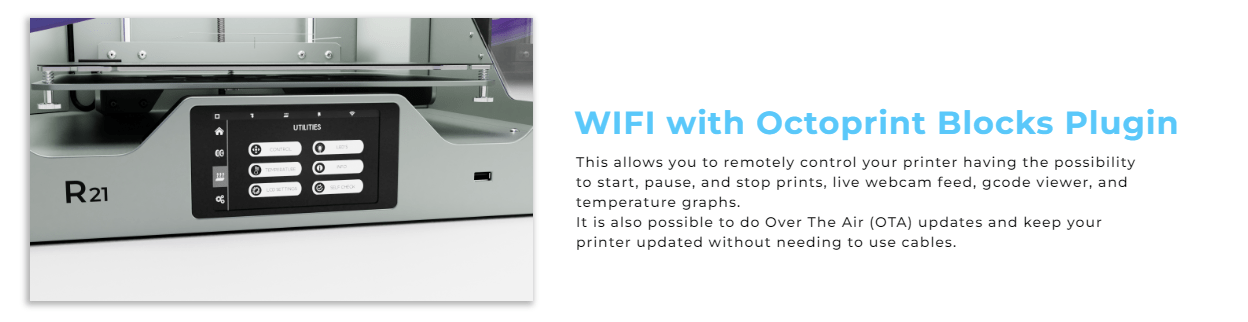 - Controlo remoto com Wi-Fi (Connectivity Kit) – Com a nova conexão wi-fi, pode iniciar, pausar e interromper impressões remotamente, permitindo também acompanhar o desenvolvimento da impressão enquanto assiste a uma livestream da impressora.