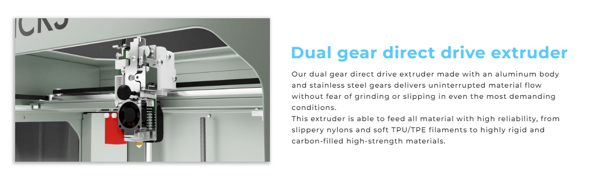 - Materiais suportados: PLA / ABS / HIPS / PC / TPU / TPE / PETG / ASA / PP / PVA / Nylon / Glass Fiber Infused/ Carbon Fiber Infused/ Metal Fill/ Wood Fill