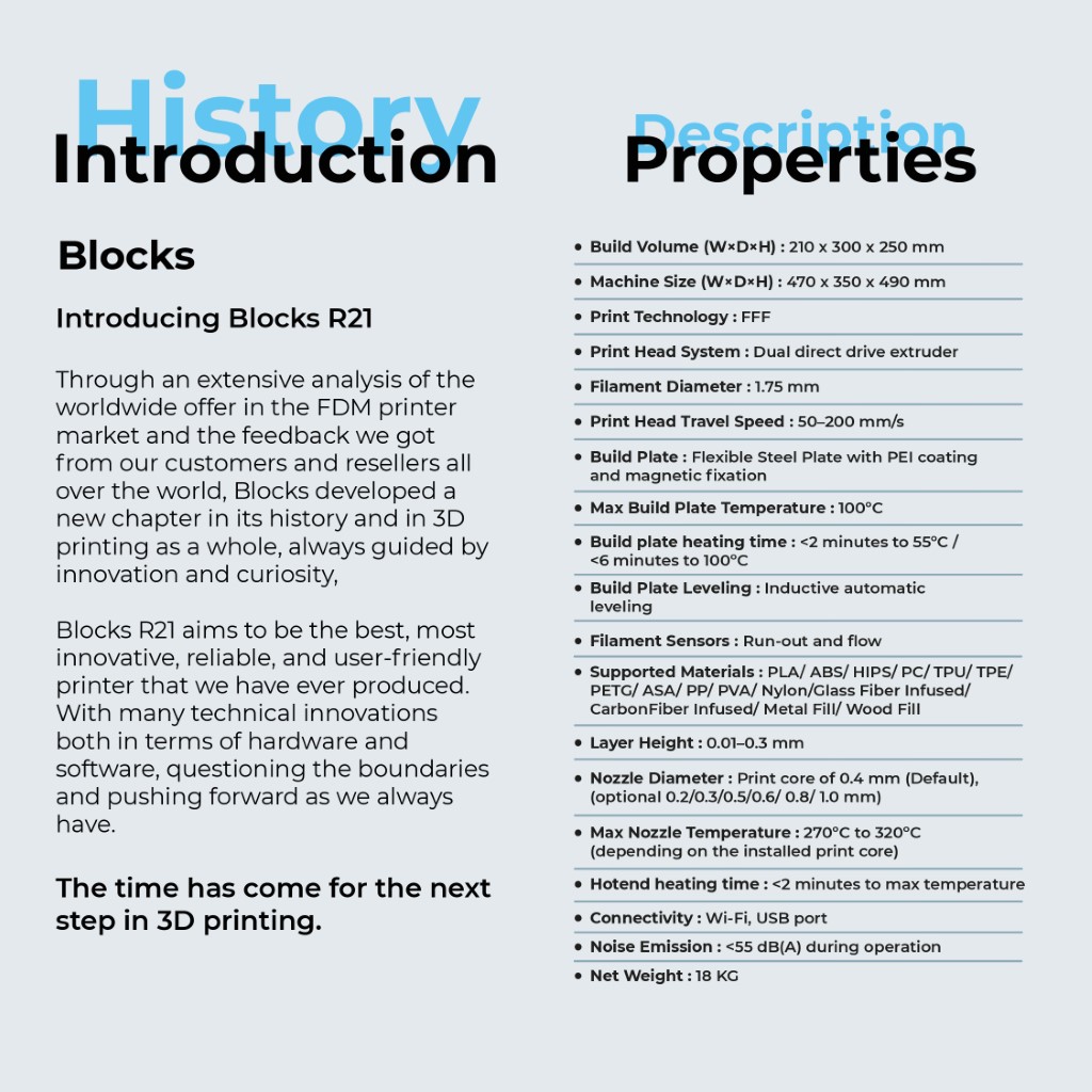 BLOCKS R21, Impressora 3D com Auto Nivelamento, orgulhosamente fabricada em Portugal.