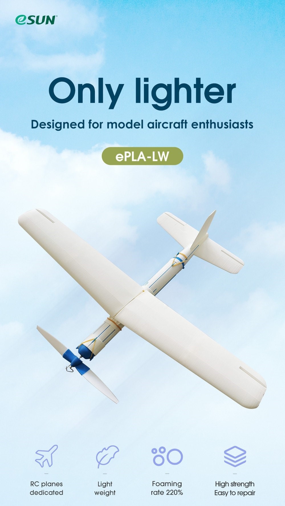 Ultra Leve – O PLA-LW permite que o modelo de aeronave tenha um wing load mais baixo e uma necessidade de velocidade de stall speed mais baixa.