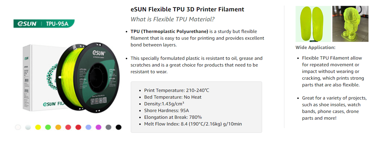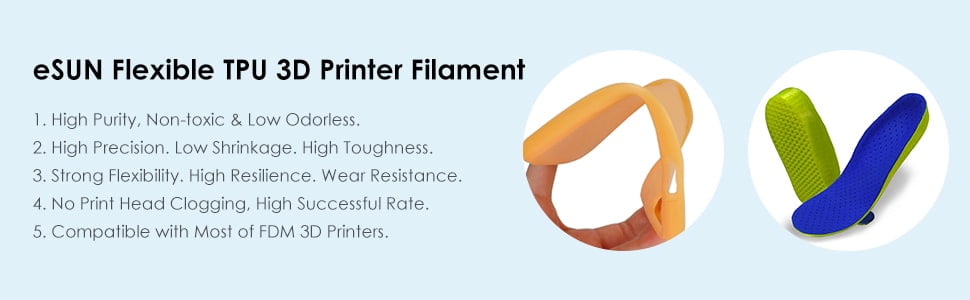 O filamento TPU é compatível com quase todas as impressoras 3D, incluindo impressoras RepRap e MakerBot, Ultimaker, Bits from Bytes, Airwolf3D, Makergear, Printrbot, Bukobot, Creality, Type A Machines e muitas mais.