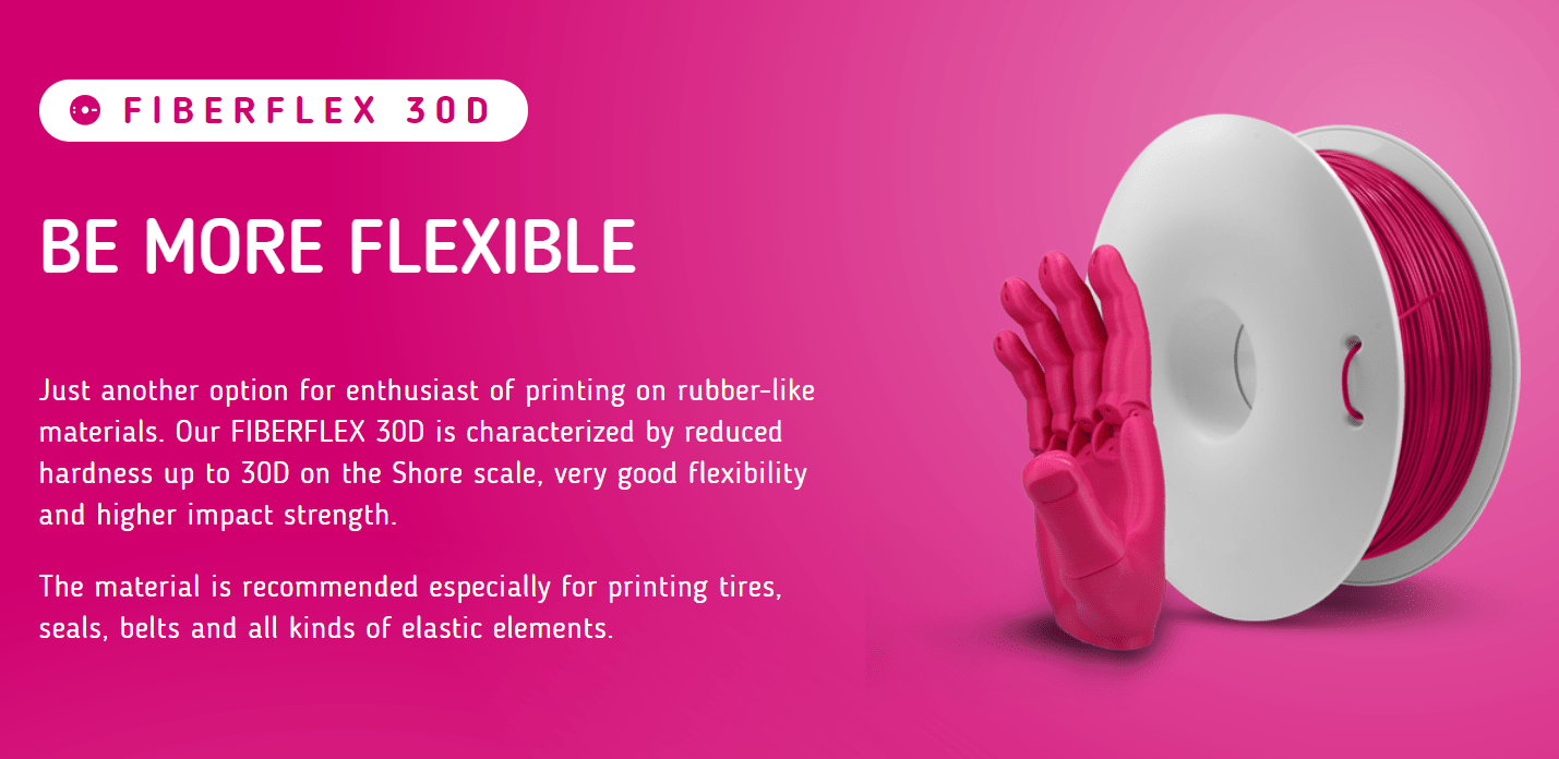 Apenas mais uma opção para o entusiasta da impressão em materiais semelhantes a borracha. O nosso FIBERFLEX 30D caracteriza-se por uma dureza reduzida até 30D na escala Shore, uma flexibilidade muito boa e uma maior força de impacto.