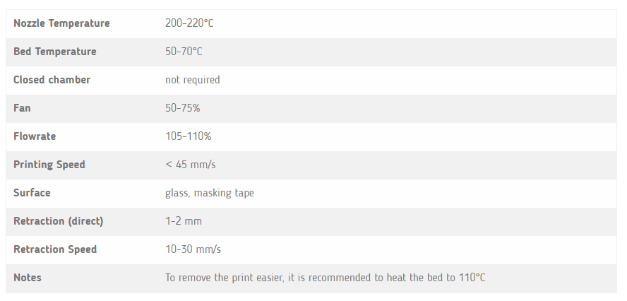 pode ser impresso com extrusor estilo Bowden na velocidade 15-30 mm/s