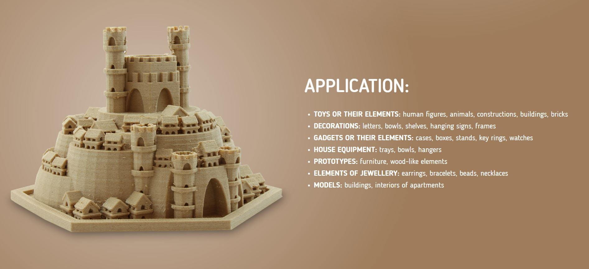 As suas propriedades permitem a impressão de elementos precisos e de formas complexas, sendo que o FIBERWOOD PLA pode ser utilizado para criar protótipos funcionais, gadgets, brinquedos e objectos decorativos.