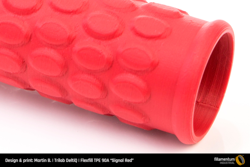 A diferença do Flexfill TPU (poliuretano termoplástico), que tem um acabamento brilhante, o TPE tem um acabamento mate e suave, que resulta agradável ao tacto e não é pegajoso, o que ajuda a conseguir um acabamento perfeito, resistente à sujeira e lavable.