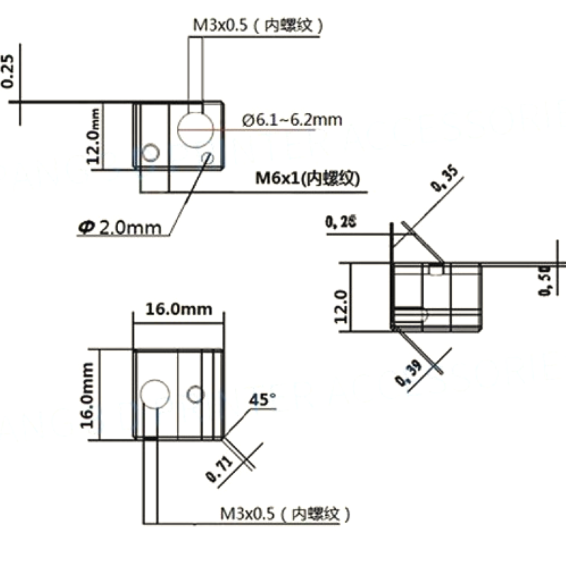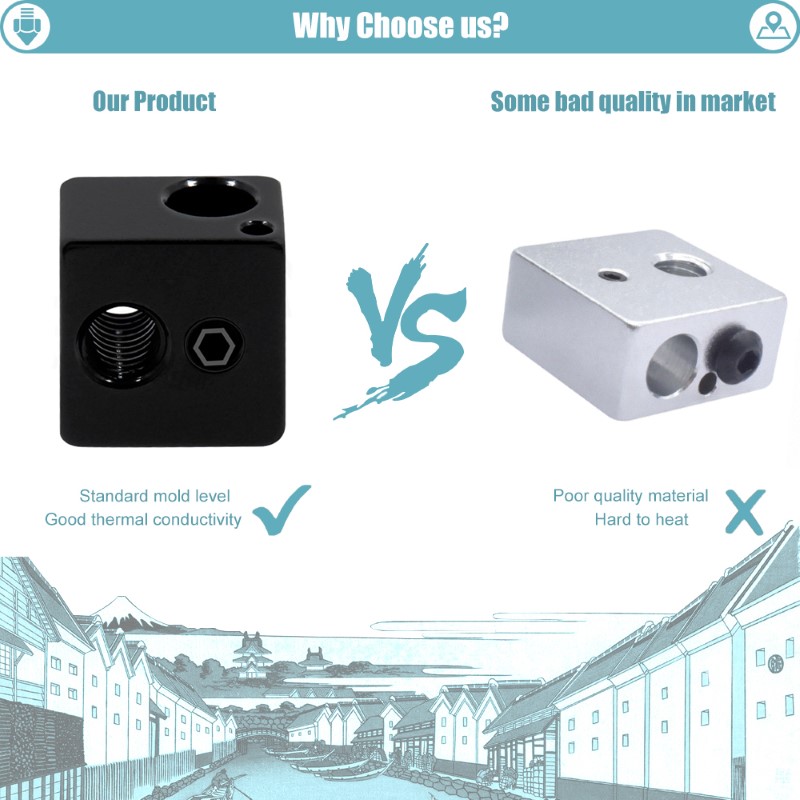 Heat Block V5 Clone Alumínio 16X16X12 ( Heatblock bloco de aquecimento compatível com E3D V5 clone e não com o original ) – AIMSOAR