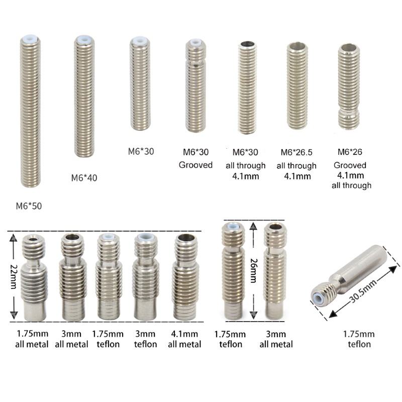 Heat Break Aberto M6 26.5mm para PTFE 4mm ( Heatbreak thread throat all through 4.1mm ) – AIMSOAR