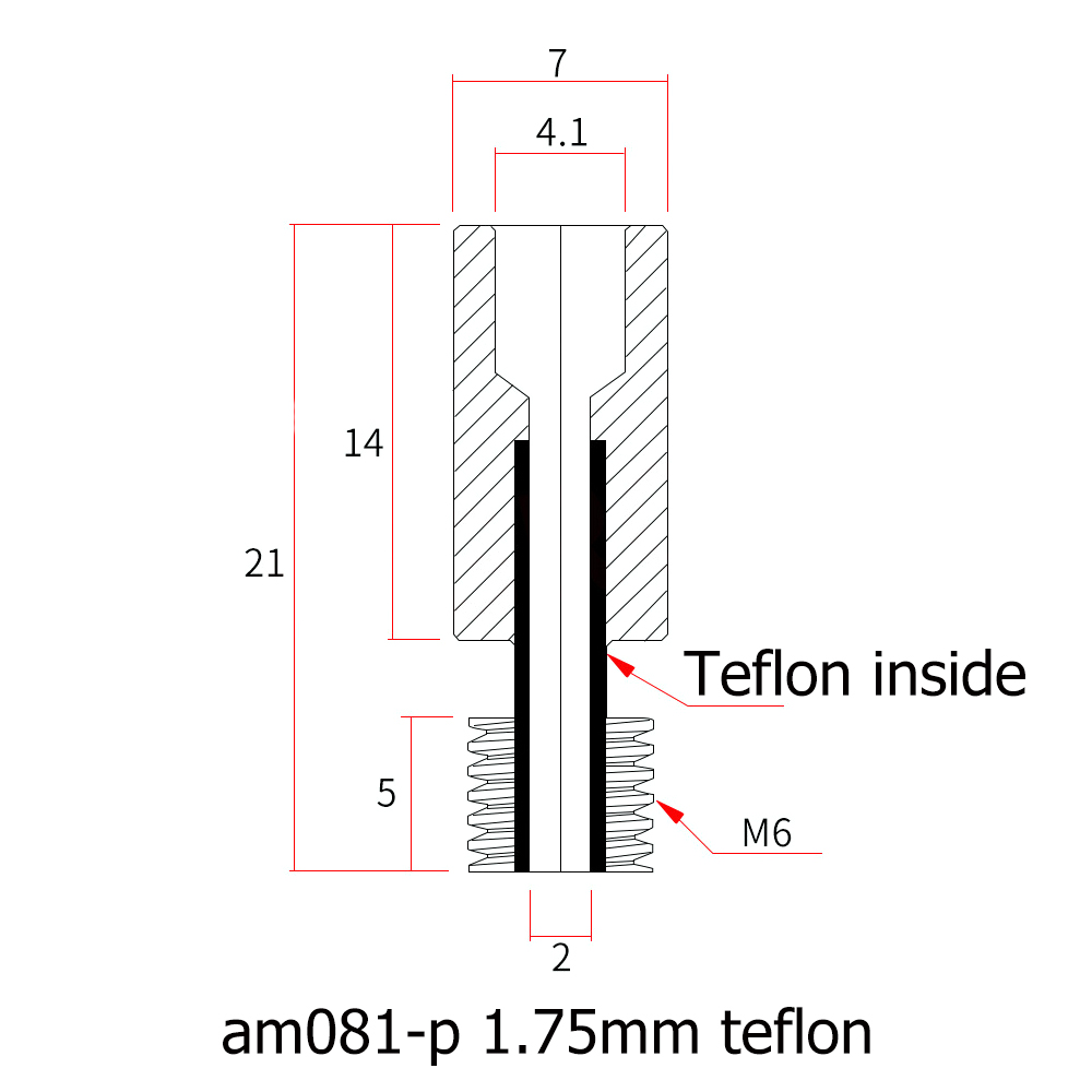 Heat Break PTFE Garganta 1.75mm ( Single Head Dual Color Throat Heatbreak ) – AIMSOAR