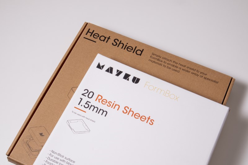 O Escudo de Calor Mayku permite que a FormBox trabalhe com folhas mais grossas, melhorando a distribuição de calor através do material. O escudo térmico demora 30 segundos a instalar e não requer quaisquer ferramentas para a sua instalação. Uma pequena porta de visualização permite a visibilidade do material enquanto aquece e é enviado em segurança em embalagens de protecção.