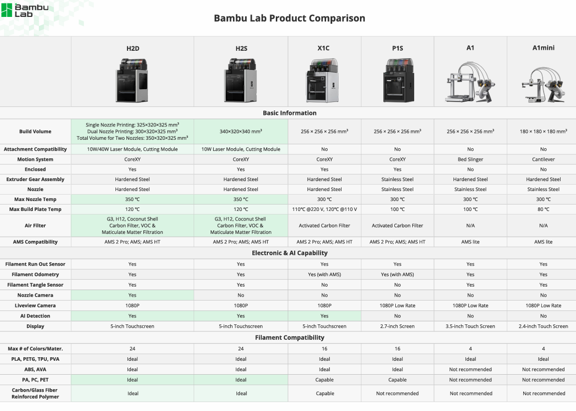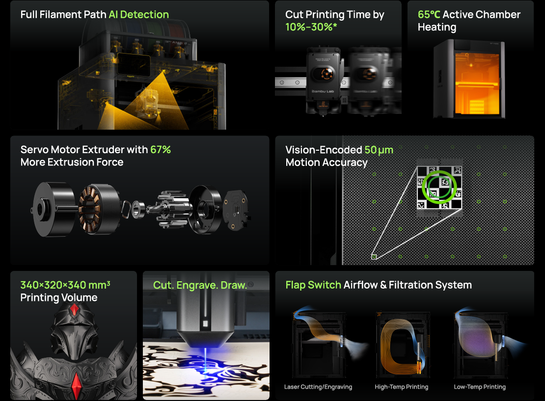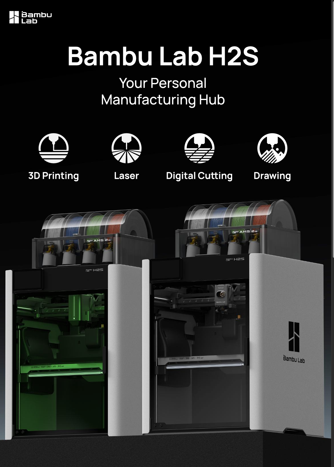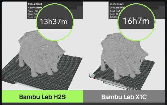 Com um volume de construção de 340 × 320 × 340 mm³ — 120% mais capacidade do que a X1C — a H2S oferece o maior espaço de impressão entre todas as impressoras Bambu Lab.