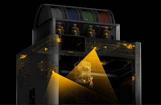 Com 23 sensores e 3 câmaras, a H2S monitoriza o fluxo, a temperatura e o consumo de filamento. O Liveview deteta spaghetti e objetos estranhos.