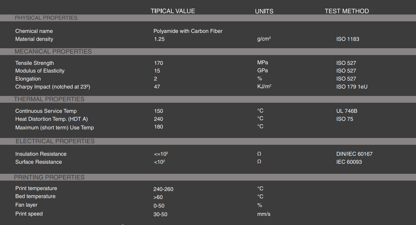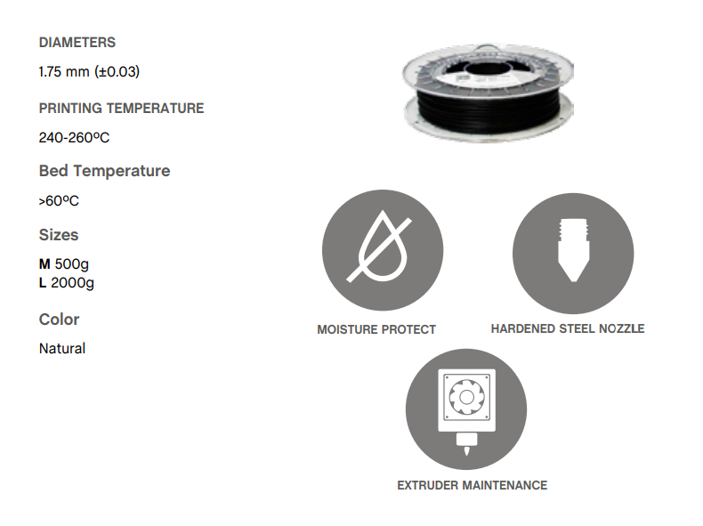 A fibra de carbono torna o filamento muito abrasivo, por isso é necessário utilizar nozzles de aço endurecido ou similares, evitando assim o desgaste prematuro dos componentes.