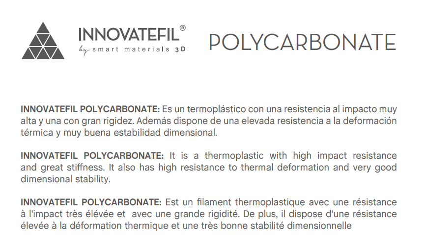 INNOVATEFIL POLYCARBONATE M 750g ( Policarbonato PC ) Natural – Smart Materials 3D