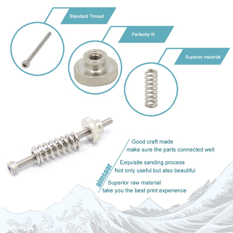 1 Mola de compressão para nivelamento da hotbed com parafuso Aço M3 45mm – AIMSOAR