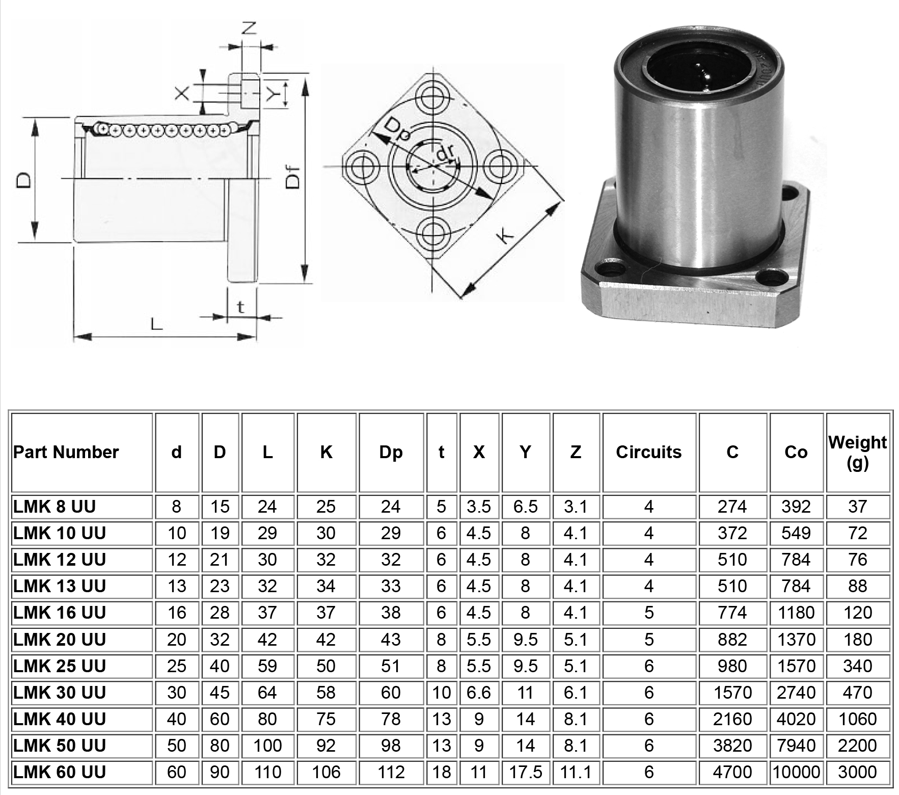 - Instalação Fácil e Rápida: Graças ao seu design flangeado e orifícios de montagem pré-furados, o LMK8UU pode ser instalado rapidamente, garantindo um alinhamento perfeito e uma fixação segura, maximizando o desempenho do teu equipamento.