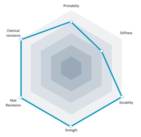 - maior resistência térmica em comparação com PA12 não modificado (resiste sem deformar até 160°C)