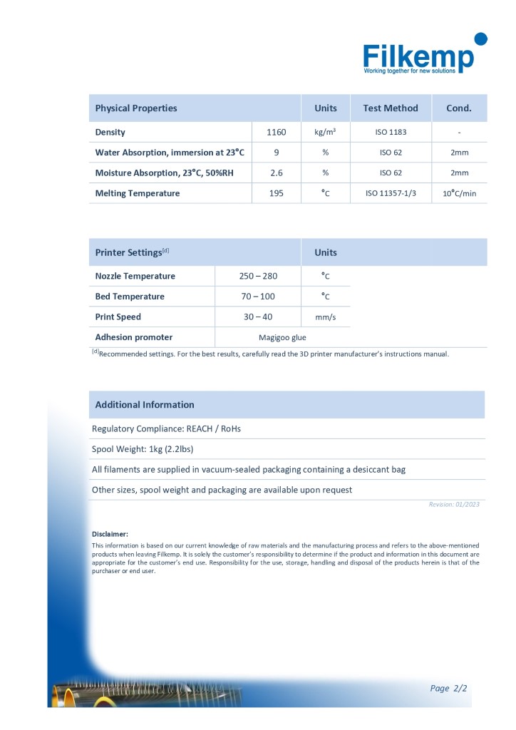 Este material é considerado de difícil aderência à superfície da plataforma de impressão 3D de vidro ou PEI. Para evitar problemas de warpping e de aderência das peças, recomendamos a aplicar potenciador de aderência especial para PA Nylon.
