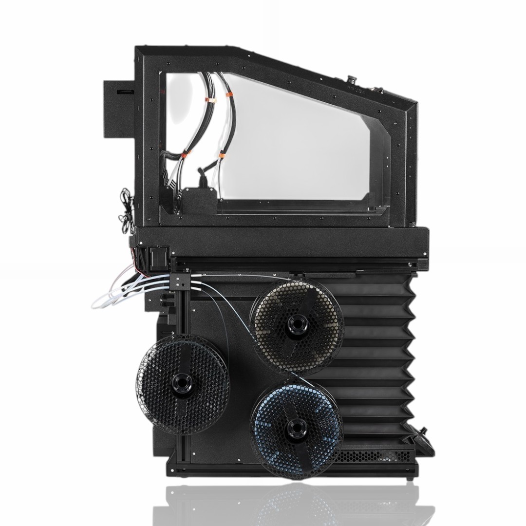 Além disso, há várias adições práticas como suportes telescópicos de bobinas de filamentos na lateral da impressora, que podem conter até 2-3kg de bobinas – serão necessárias porque o XL pode consumir através de uma bobina de filamentos normal num instante. Haverá também addons opcionais (protecção/encerramento de rascunho) disponíveis, que serão revelados mais tarde.