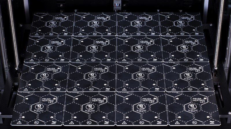 Com as dimensões definidas, poderíamos também terminar de desenvolver mais uma das características de ponta: o nosso novo colchão de aquecimento segmentado. Porque não utilizar simplesmente uma versão em escala da nossa cama “MK52” padrão? Sempre que vejo uma impressora 3D de grande escala a produzir algo pequeno, não consigo deixar de pensar no desperdício que é aquecer todo o enorme colchão térmico e queimar através de kilowatts de energia sempre que se quer imprimir algo. O nosso novo aquecedor com segmentos 9×9 cm individualmente controlados não só é eficiente em termos energéticos (é possível ligar/desligar almofadas individuais) como também reduz eficazmente o empenamento graças às suas aberturas de expansão entre cada segmento. Para explicar um pouco: os colchões de aquecimento regulares têm uma tendência para empenar à medida que a temperatura aumenta. O problema não é muito evidente com superfícies mais pequenas e pode ser parcialmente compensado com o nivelamento do leito da malha. Contudo, uma vez que se tenha um grande colchão de aquecimento, os problemas tornam-se mais visíveis.