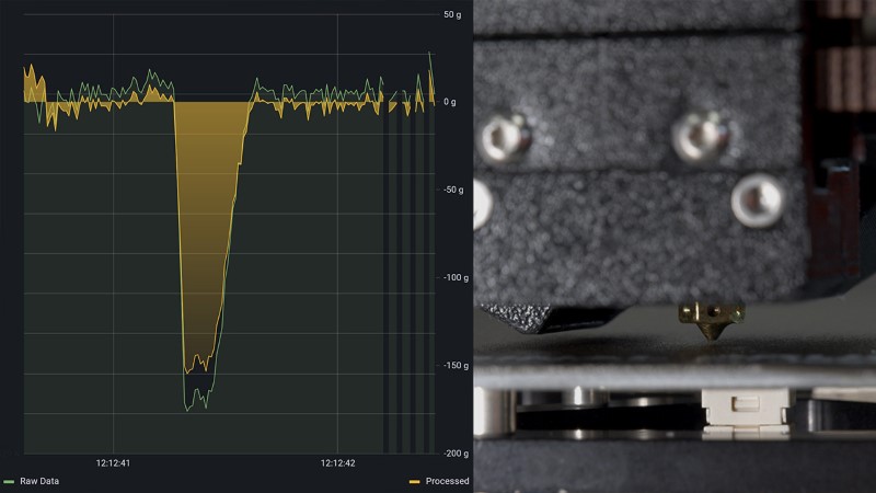 No entanto, o sensor de célula de carga permite-nos fazer mais do que isso. Podemos agora reconhecer um encravamento no nozzle e fazer uma pausa na impressão. No futuro, uma das coisas em que nos queremos concentrar é a capacidade de detectar um encravamento parcial – para que a impressora possa notificá-lo a tempo antes que o encravamento real aconteça. E talvez até detectar se a impressão se soltou da cama.
