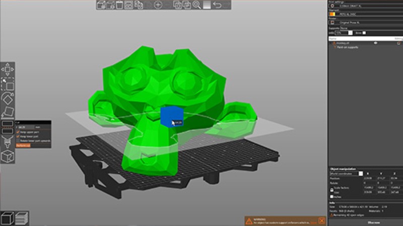 O nosso slicer multiplataforma desenvolvido internamente vem com perfis feitos internamente e totalmente testados para todas as nossas impressoras 3D e uma vasta gama de filamentos. Com ferramentas incorporadas, tais como geração de suporte avançado, corte, distribuição automática de objectos, engomagem e muitas outras, transformará os seus modelos 3D em ficheiros de impressão num instante!