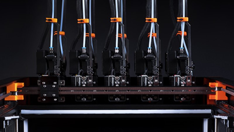 Porque XL é uma máquina CoreXY, acrescentar capacidades de troca de ferramentas é algo que nos vem sempre à mente. O resultado é que a máquina pode funcionar com um máximo de cinco cabeças de ferramentas independentes.