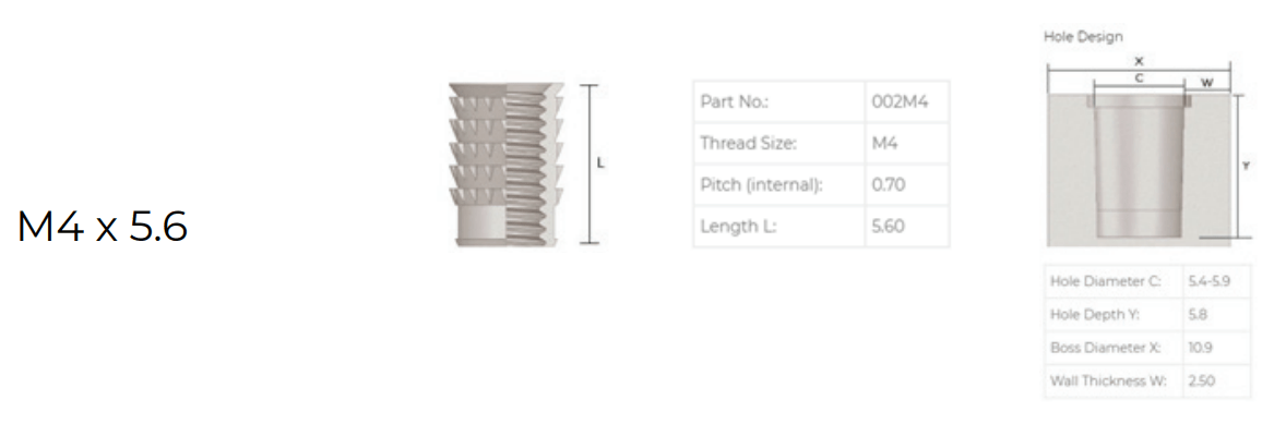 Pack 5 unidades Porca Inserção M4 para embutir em plástico ( Thread inserts ) – Bondtech