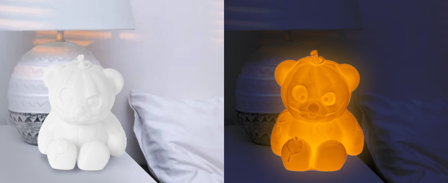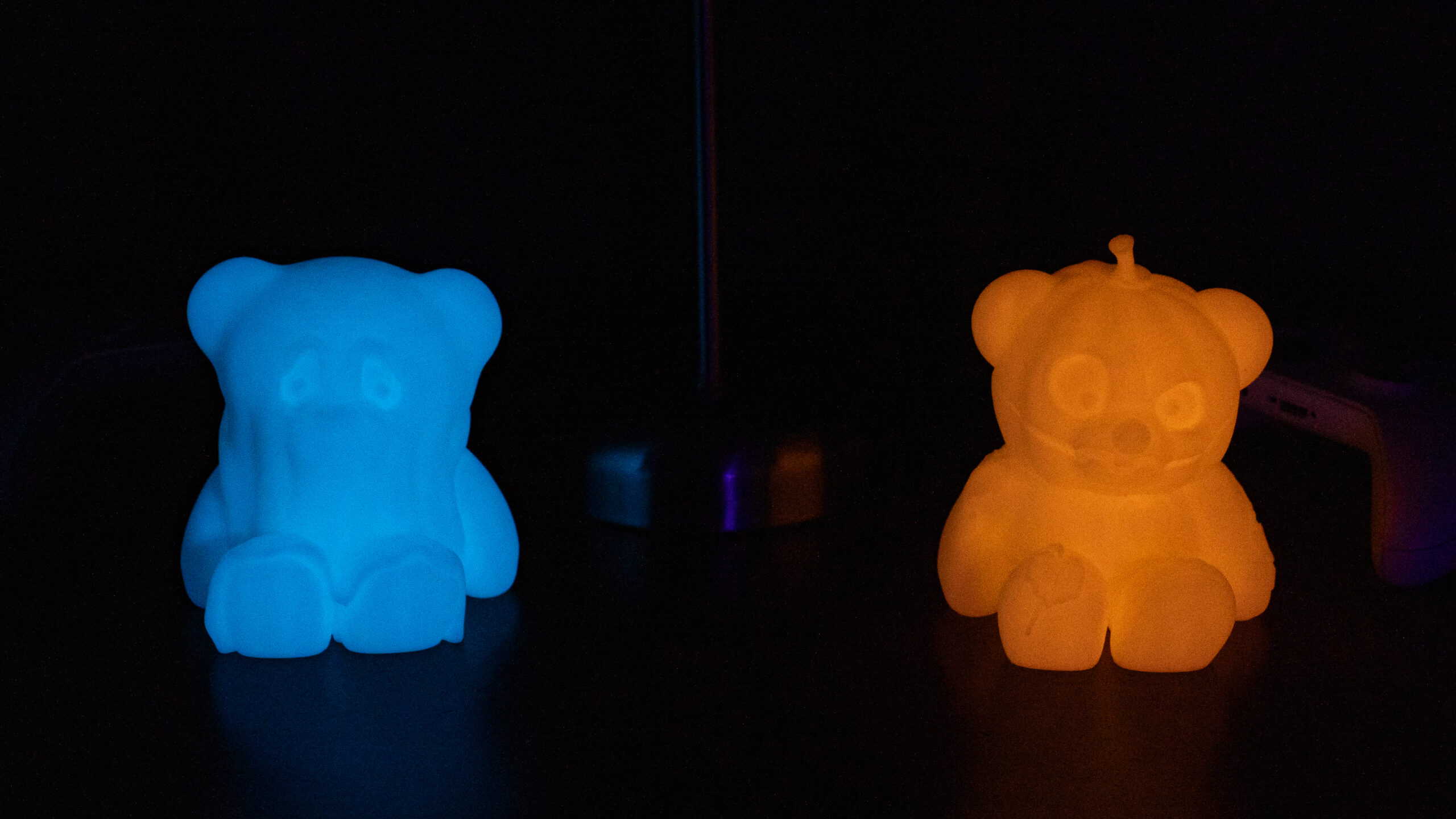 • Panchroma™ Luminous PLA apresenta a mesma cor tanto com luz como no escuro.