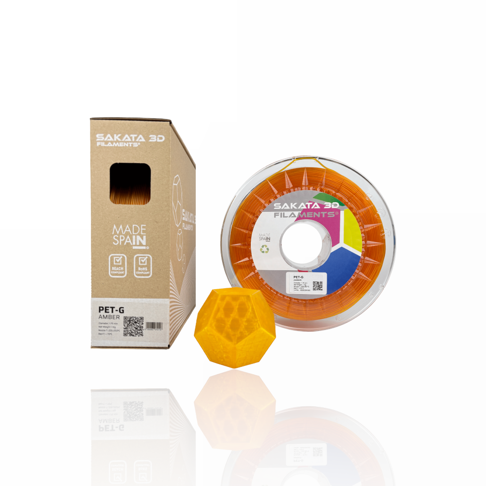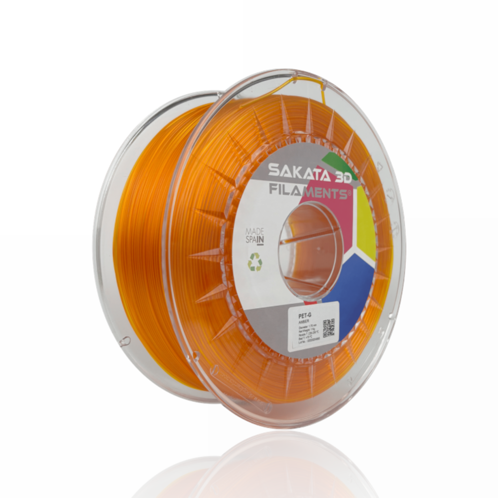 O PET‑G da SAKATA 3D destaca-se pelo seu elevado desempenho mecânico, resistência às intempéries e resistência química, com especial ênfase na sua elasticidade. Graças à sua composição, permite criar peças transparentes ou translúcidas (cores translúcidas) com superfícies brilhantes.