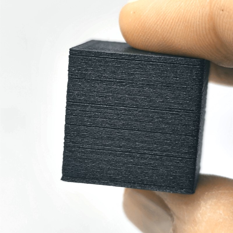 Filamento PET-G CF reforçado com fibra de carbono. Este material tem excelentes propriedades mecânicas para garantir peças de alta resistência ao impacto sem renunciar à facilidade de impressão de PET-G.