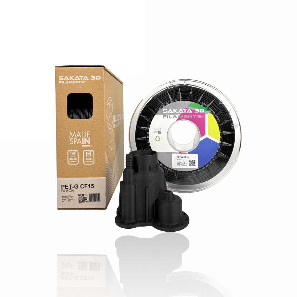 O filamento PET‑G CF15 da Sakata 3D é um PET‑G (com glicol) reforçado com 15% de fibras de carbono especiais (CF) e estabilizado termicamente, formulado especialmente para aplicações de impressão 3D.