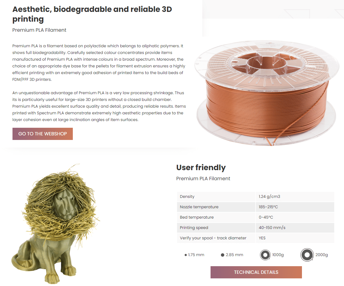O PLA da marca Spectrum Filaments é um material básico para impressão 3D sendo um filamento bastante durável e resistente.