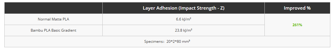 Como novas opções de cor na série PLA Basic, o filamento gradiente mantém um desempenho semelhante ao PLA Basic, oferecendo uma aderência entre camadas ainda mais forte e maior resistência, reduzindo o risco de quebra das peças impressas.