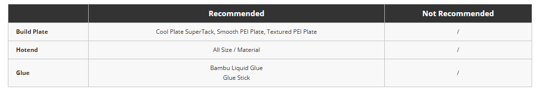 | Recommended Printing Settings | Physical Properties | Mechanical Properties |