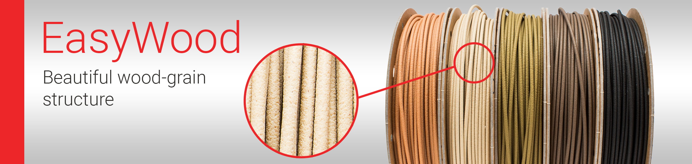 EasyWood looks, feels and smells like real wood and beautiful wood-nerve structures can be obtained by grinding the printed object a bit with a piece of fine grit sandpaper or by varying with the printing temperature.