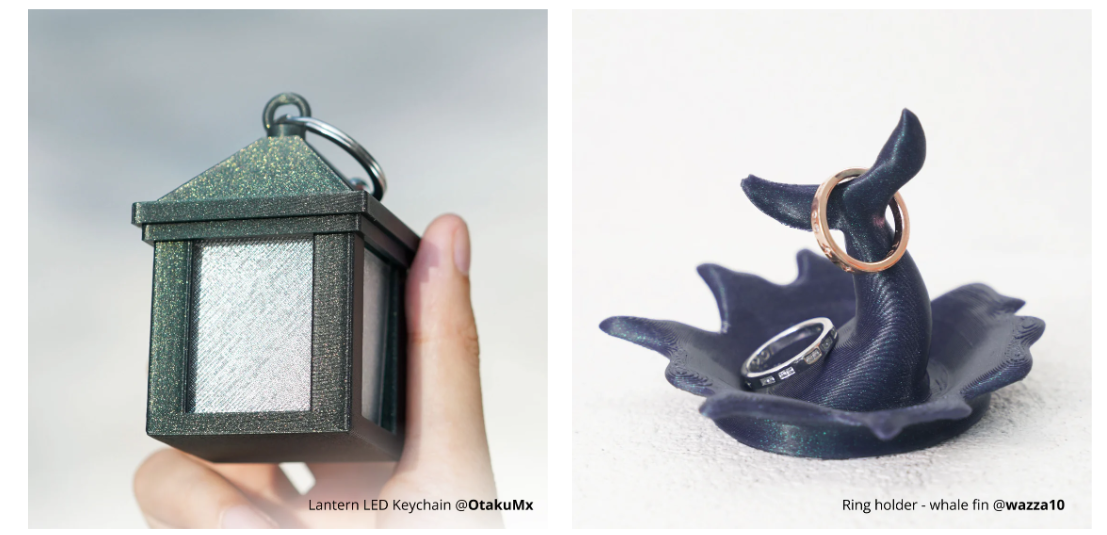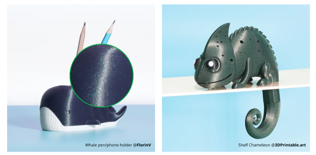Os aditivos de microesferas de vidro do PLA Galaxy criam efeitos de luz únicos, oferecendo reflexos dinâmicos de várias perspetivas.