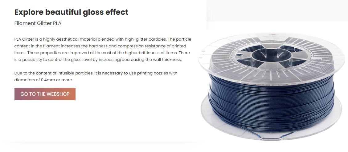 Spectrum PLA GLITTER é um material altamente estético misturado com partículas de alto brilho.