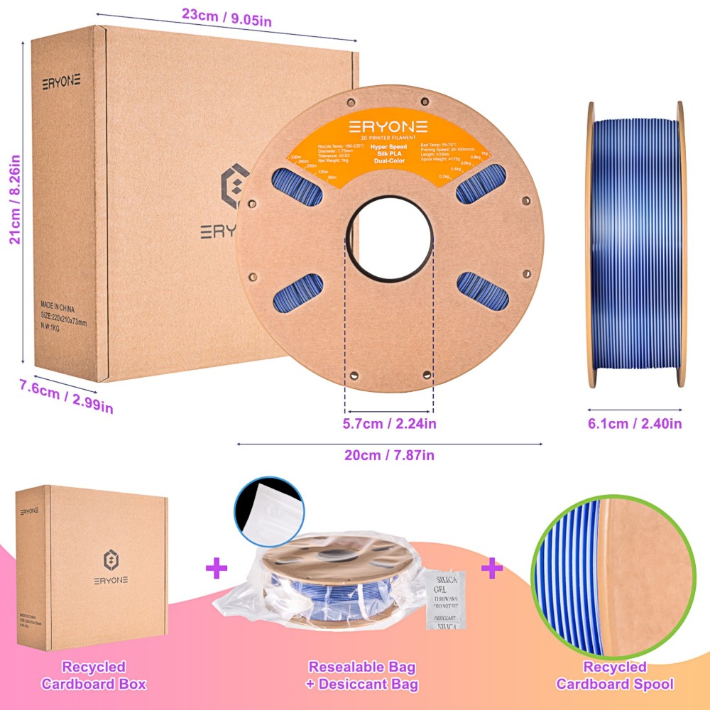 PLA High Speed Silk Dual-Color 1kg Midnight Blue and Silver – ERYONE