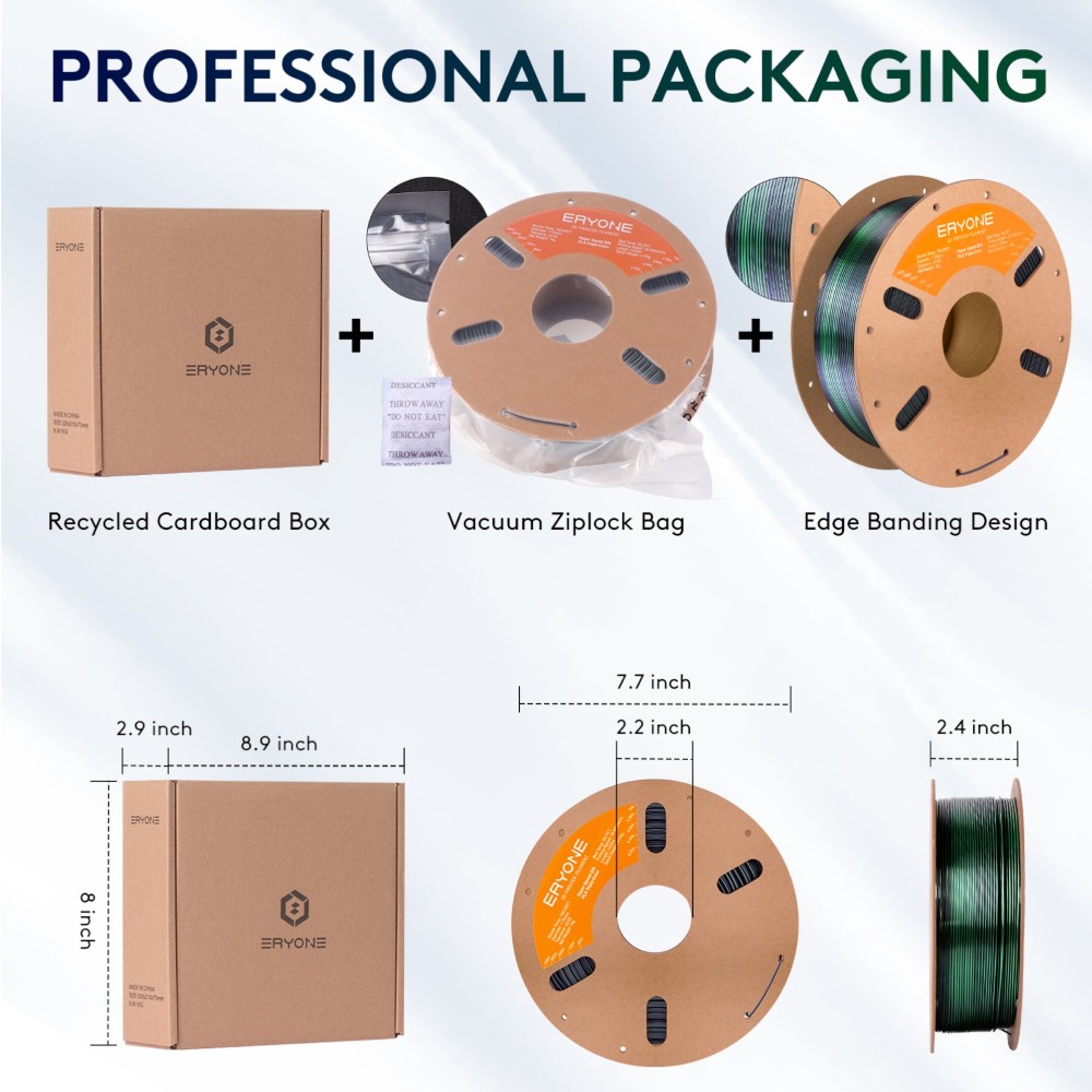O filamento PLA da ERYONE destaca-se pelas suas características:
