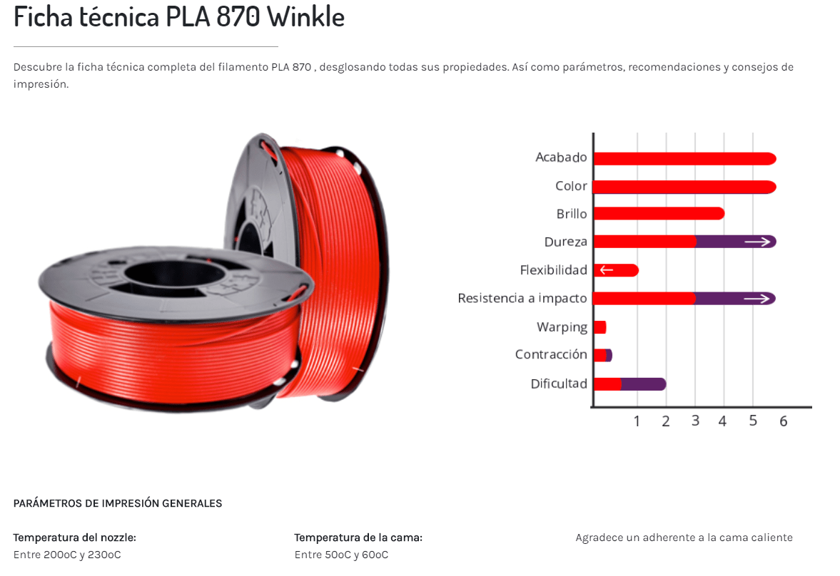 O nosso filamento PLA 870 (1,75mm ou 2,85mm) é um filamento fabricado em Espanha para impressoras 3D com tecnologia FFF/FDM.