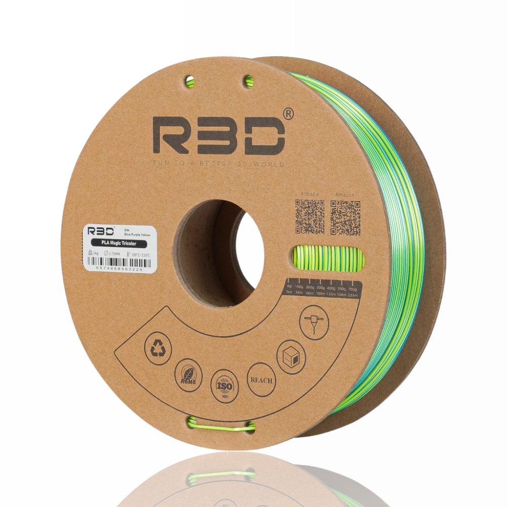 O PLA Tri Color da R3D é composto por um filamento de PLA de alta qualidade com três cores diferentes em uma única bobina, que oferece excelentes propriedades mecânicas e térmicas. Com uma temperatura de transição vítrea (Tg) de 60°C, este filamento é altamente resistente a impactos e tem excelente resistência química.