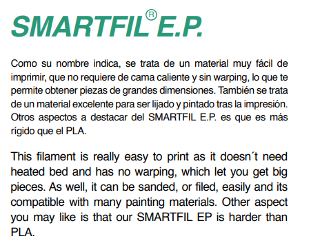 Filamento Smartfil PLA EP da marca Smart Materials 3D, de excelente qualidade, para a Impressão 3D. Indicado tanto para utilizadores mais avançados e profissionais como para quem está a começar.