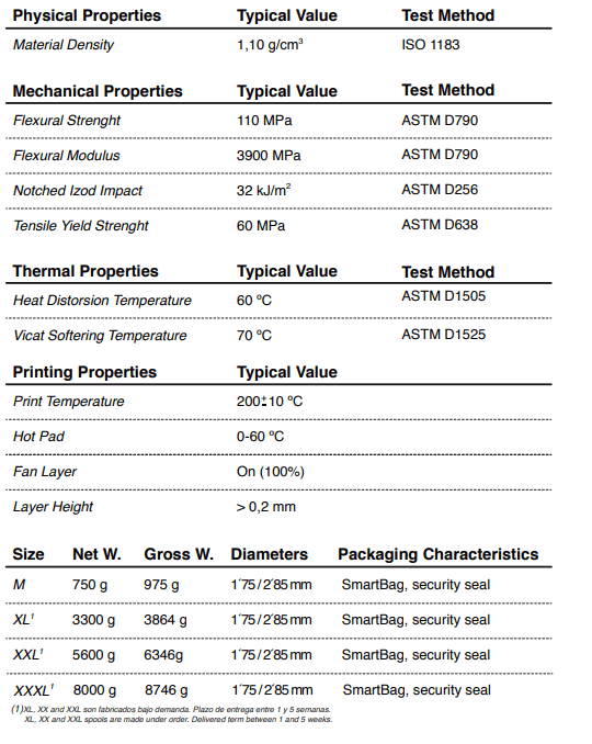 Você gostará deste material devido à sua facilidade de uso: baixas temperaturas de impressão sem deformação e muito fácil de manipular para melhorar o acabamento da superfície.